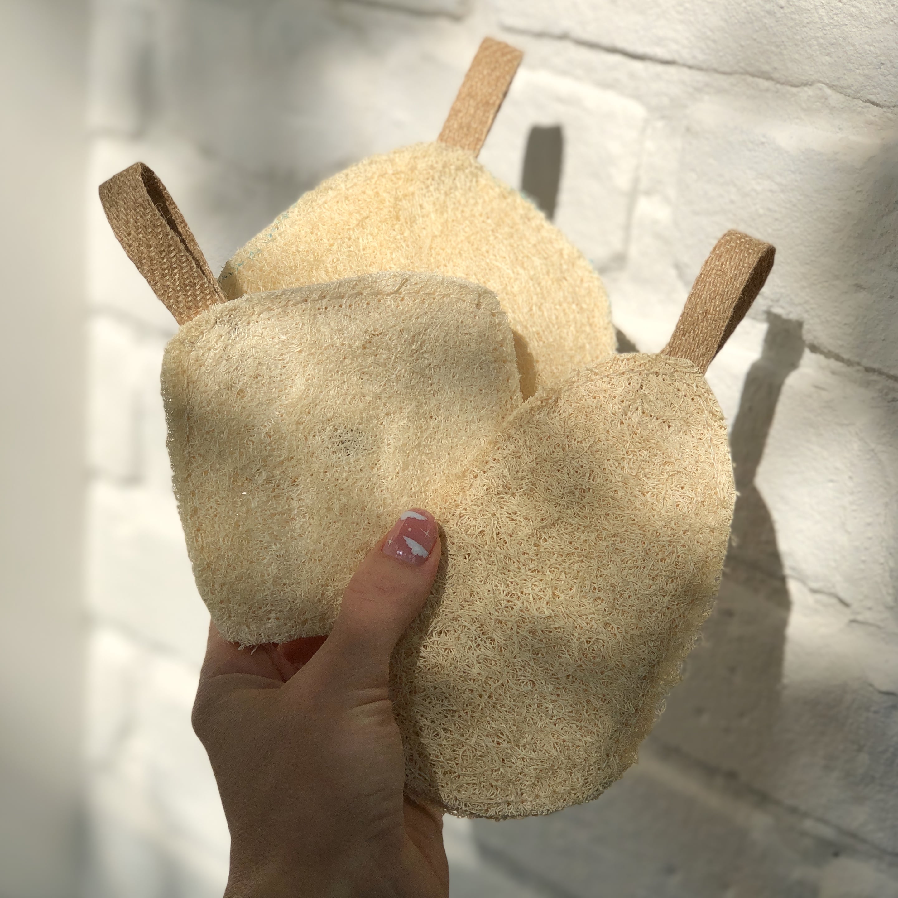 Люфа бывает цельной, которую можно порезать на кусочки нужного размера, а бывает в форме губок, одна цельная – это годовой запас губок!