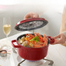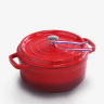 Высококачественный чугун обеспечивает равномерное распределение тепла и длительное сохранение температуры. Эмалированное покрытие защищает чугун от ржавчины, облегчает чистку и не впитывает запахи. Подходит для использования на всех типах плит, включая индукционную, а также в духовке.