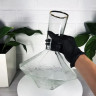 Стильный декантер с геометрическим дизайном, совмещающий современную эстетику с практичностью. Благодаря объему 2200 мл, он идеально подходит для декантации больших порций вина, позволяя напитку лучше раскрывать аромат и вкус. Изготовленный из прозрачного текстурированного стекла, декантер имеет оригинальную треугольную форму основания и изящно зауженную горлышко с золотистым ободком — придающая изысканность деталь. Такой аксессуар станет центральным элементом вашего стола или отличным подарком для ценителей вина.