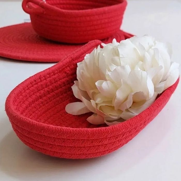Овальная корзина "Cardinal" яркого цвета станет стильным и функциональным дополнением вашего дома. Изготовленная путем плотного плетения, она имеет невысокие бортики, что делает ее идеальной для сервировки хлеба, фруктов, печенья или для хранения мелких предметов или как декоративный акцент.