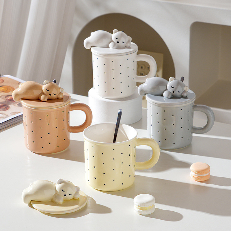 Керамическая кружка Sleepy Bear с ложкой – уютный аксессуар для теплых напитков. Крышка со спящим мишкой придает очарование, а удобная ложка дополняет набор. Идеально для подарка или собственного удовольствия!