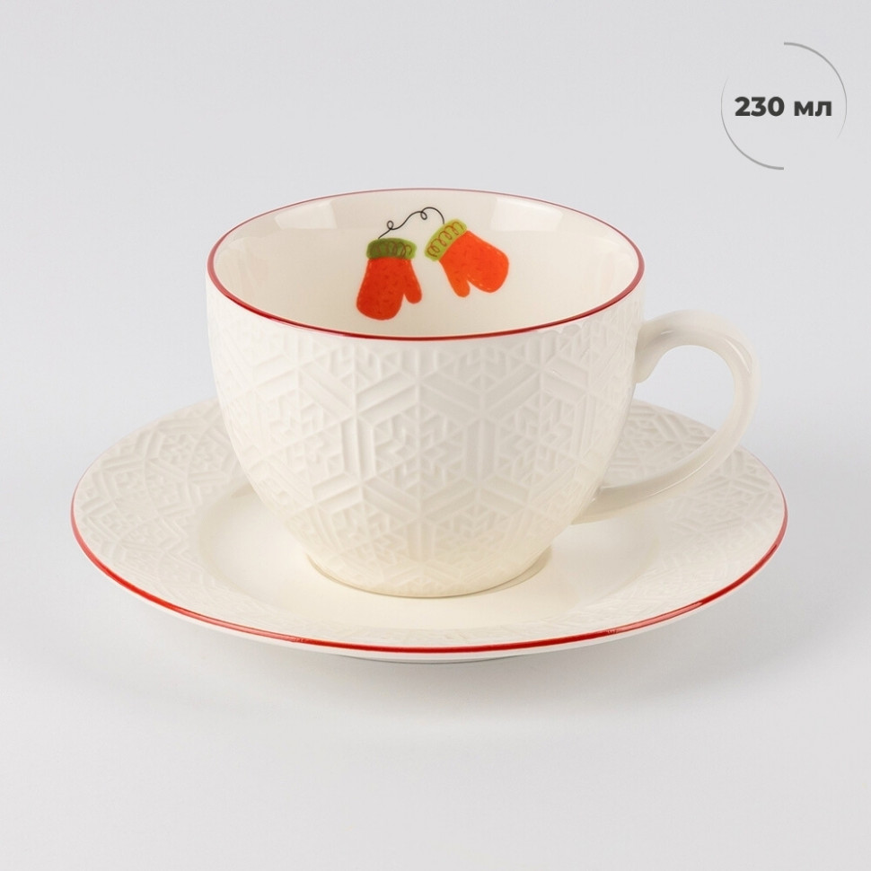Размер: Объем – 230 мл, высота – 7 см, диаметр – 9 см, длина с ручкой – 12 см, диаметр блюдца – 15,5 см.