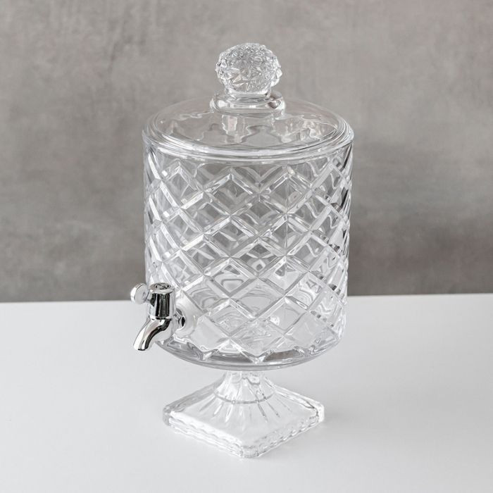 Стеклянная лимонадница объемом 4,5 литра сочетает стильный дизайн и практичность, создавая идеальный аксессуар для подачи напитков. Благодаря рельефному стеклу она смотрится изысканно, а крышка плотно закрывает емкость, сохраняя свежесть содержимого. Удобный краник обеспечивает легкую наливку без лишних усилий, что делает ее отличным выбором для домашних посиделок, праздничных мероприятий и фуршетов. Лимонадница подходит для лимонадов, соков, холодных чаев и других охлаждающих напитков.