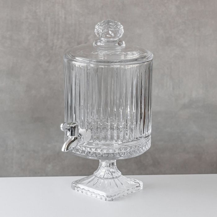Стеклянная лимонадница объемом 4,5 литра сочетает стильный дизайн и практичность, создавая идеальный аксессуар для подачи напитков. Благодаря рельефному стеклу она смотрится изысканно, а крышка плотно закрывает емкость, сохраняя свежесть содержимого. Удобный краник обеспечивает легкую наливку без лишних усилий, что делает ее отличным выбором для домашних посиделок, праздничных мероприятий и фуршетов. Лимонадница подходит для лимонадов, соков, холодных чаев и других охлаждающих напитков.
