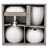Набор для ванной комнаты состоит из изысканной комбинации диспенсера, мыльницы и 2 удобных стаканов, создавая гармоничную и практичную среду для вашей ванной комнаты. Особенности набора для ванной: функциональный дизайн, качество и долговечность, простая установка, легкость обслуживания и стильное оформление. Сделайте вашу ванную оазисом комфорта и гармонии! Создайте пространство, где функциональность встречается с элегантностью, даря вам комфорт и удовольствие в каждом касании.