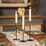 Сборная конструкция достаточно легка: детали вкручиваются друг в друга. Набор металлических подсвечников для декорирования включает 3 идентичных подсвечника разной высоты. Они могут использоваться не только совместно, но и по отдельности. Высокая, тонкая ножка делает свечные подставки очень изящными и компактными. Каждый подсвечник имеет мягкую подкладку на стойкой основе. Элегантные металлические подсвечники – стильный и декоративный элемент, который можно использовать в ресторанах, на свадебных церемониях, гостиницах, в домашнем интерьере и других местах для создания элегантного и атмосферного освещения.