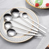 Этот набор ложек спагетти "ALASKA" создан для элегантной подачи и удобного потребления пасты, сохраняя изящный минималистичный стиль всей коллекции. Каждая ложка имеет гладкую, полированную поверхность, классическую круглую или овальную чашу и простую, слегка зауженную ручку без лишних деталей. Часто ложка для спагетти используется в паре с вилкой для спагетти для удобной накручивания пасты, или в качестве сервировочной ложки.