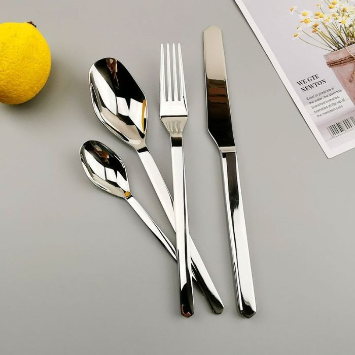 Набор столовых приборов Silver Mirror отличается своим современным минималистическим дизайном и безупречным зеркальным блеском. Каждый прибор имеет простые, чистые линии и гладкую, идеально отполированную поверхность, что придает ему изысканный и элегантный вид. Этот набор прекрасно подойдет к любой современной сервировке стола, добавляя нотку сдержанной роскоши.
