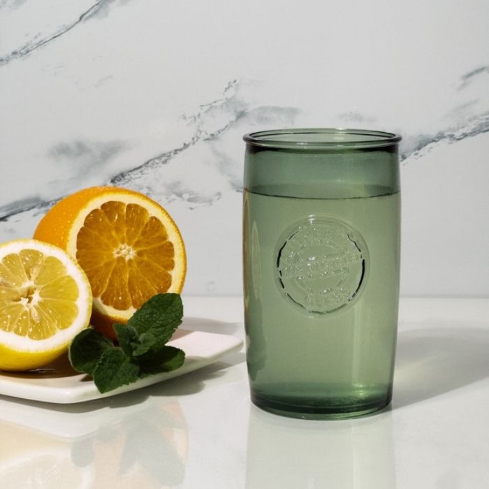 Этот набор из четырех стаканов "AUTHENTIC ALTO" отличается своим аутентичным дизайном и практичностью. Каждый стакан имеет классическую высокую форму (хайбол) и украшен характерным рельефным круглым тиснением с надписью "AUTHENTIC 100% RECYCLED GLASS", что подчеркивает ее экологичность и придает винтажному шарму. Стаканы идеально подходят для подачи воды, соков, лимонадов, холодного чая или коктейлей.
