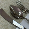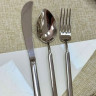 Набор столовых приборов Errou отличается своим современным и элегантным дизайном, сочетающим классические формы с оригинальными акцентами. Каждый прибор имеет гладкую, отполированную рабочую часть и изящную, несколько суженную ручку с характерным утолщением или декоративным элементом у основания. Этот набор придаст стилю и изысканности любой сервировке.