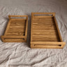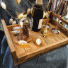 Все подносы сделаны вручную в нашей мастерской. У тебя есть возможность выбрать размер - у нас их два, маленький и большой. Мы создадим идеальный деревянный поднос именно для твоего ленивого дня. Ручки сделаны из дерева - сосны. Вся поверхность древесины покрыта пропиткой на водной основе.