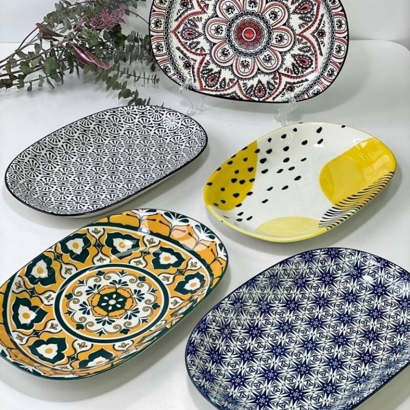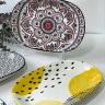 Керамическая тарелка с ярким дизайном, которая станет стильным акцентом на вашем столе. Идеально подходит для подачи салатов, закусок или фруктов, сочетая эстетику и практичность в повседневном использовании.