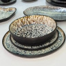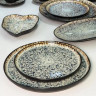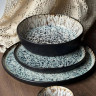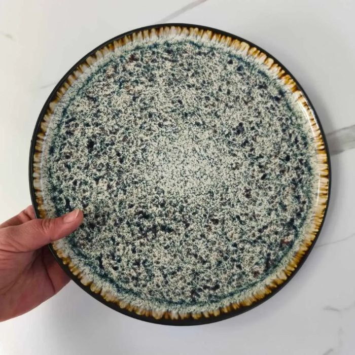 Эта обеденная тарелка "Паноптикон" привлекает внимание своим уникальным дизайном. Поверхность покрыта эффектной реактивной глазурью, создающей неповторимый узор с сочетанием светлых и темных точек и текстур, обрамленных более темным кантом. Благодаря своему артистическому и несколько рустикальному виду, тарелка станет стильным акцентом на вашем столе, идеально подходя для подачи основных блюд.