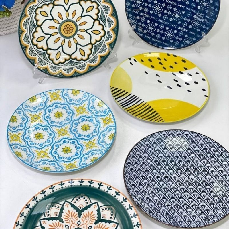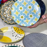 Керамическая тарелка с ярким дизайном, которая станет стильным акцентом на вашем столе. Идеально подходит для подачи салатов, закусок или фруктов, сочетая эстетику и практичность в повседневном использовании.