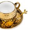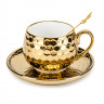 Керамічна чашка "Соти" золотому кольорі надзвичайно естетична! Набір з чашки у вигляді сотів, блюдця та ложечки з наконечником у вигляді листя виглядає дуже оригінально! Такий керамічний набор ідеально підійде в якості подарунка, адже такий гарний посуд довго радуватиме своїм виглядом та якістю!
