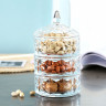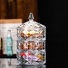 Практична та елегантна триярусна скляна цукерниця складається з трьох однакових ємностей, що ставляться одна на одну, та доповнюється кришкою. Виготовлена зі скла, вона дозволяє бачити вміст кожного ярусу та додає вишуканості сервіруванню. Ідеально підходить для роздільного зберігання та подачі різноманітних цукерок, горіхів, сухофруктів, печива або інших дрібних снеків, така цукерниця не лише зберігає свіжість продуктів, але й стає стильним елементом декору на кухні чи святковому столі.