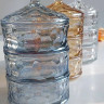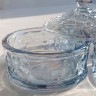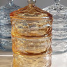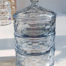 Практична та елегантна триярусна скляна цукерниця складається з трьох однакових ємностей, що ставляться одна на одну, та доповнюється кришкою. Виготовлена зі скла, вона дозволяє бачити вміст кожного ярусу та додає вишуканості сервіруванню. Ідеально підходить для роздільного зберігання та подачі різноманітних цукерок, горіхів, сухофруктів, печива або інших дрібних снеків, така цукерниця не лише зберігає свіжість продуктів, але й стає стильним елементом декору на кухні чи святковому столі.