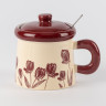 Розмір: Об'єм - 400 мл, висота з кришкою - 11 см, висота без кришки - 9 см, діаметр - 7 см, довжина з ручкою - 13 см, ложка - 14 см.
