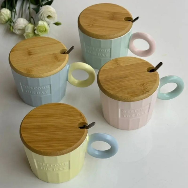 Керамічна кружка "Welcome" з дерев'яною кришкою та ложкою – ніжний та затишний вибір у пастельних кольорах. Натуральна дерев'яна кришка зберігає тепло напою, а зручна ложка доповнює набір. Ідеально для щоденного використання або подарунка!