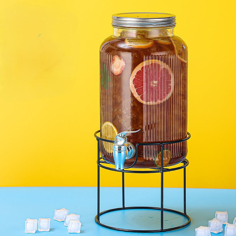 Стеклянная лимонадница с крышкой на металлической подставке – это стильный и практичный диспенсер для напитков, который идеально подходит для подачи лимонада, сока, холодного чая или воды. Благодаря рифленному стеклу она выглядит элегантно, а герметичная металлическая крышка обеспечивает сохранение свежести напитков. Встроенный краник позволяет легко наливать напиток без необходимости наклонять емкость, что делает ее удобной в использовании. Металлическая подставка добавляет стойкости и эстетики, делая эту лимонадницу отличным дополнением к сервировке на вечеринках, свадьбах или просто для ежедневного использования дома.