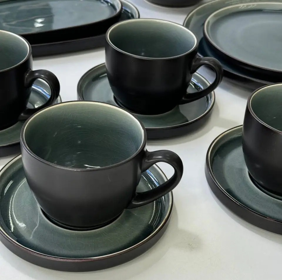 Вишуканий набір керамічних чашок із блюдцями серії Novel. Чашки об'ємом 300 мл декоровані унікальним малюнком у сірих тонах, що плавно переходить від насиченого світлого відтінку. Блюдця доповнюють дизайн, створюючи гармонійний комплект.