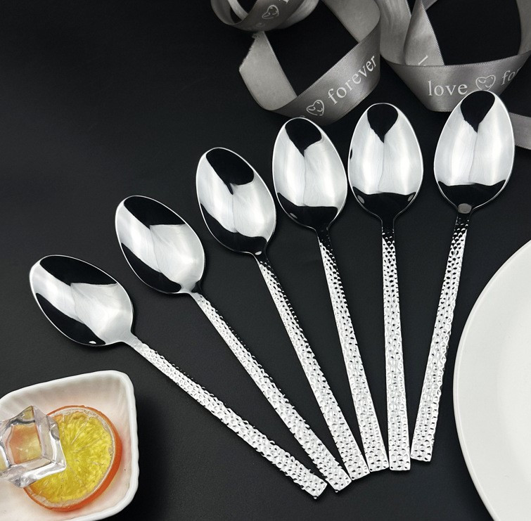 Цей набір чайних ложок "ISEO HAMMERED" створений для того, щоб додати елегантності вашим моментам чаювання. Кожна ложечка має витончену овальну форму та ручку з унікальним "кованим" (чеканним) оздобленням, характерним для цієї серії. Текстурований дизайн не лише привабливий, але й забезпечує зручність у використанні. Ці ложки ідеально підходять для розмішування чаю, кави, а також для подачі джемів чи невеликих десертів.