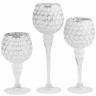 "Тріо вишуканих підсвічників: елегантність у кожній деталі. Набір з трьох скляних підсвічників різної висоти (20 см, 25 см, 30 см) – це справжня знахідка для створення особливої атмосфери. Кожен підсвічник – це витончена гра світла і тіні, яка додасть вашому інтер'єру нотки розкоші. Вони ідеально підійдуть для святкового столу, романтичної вечері або просто для створення затишку вдома. Тонка ніжка надає підсвічникам легкості, а різноманітність висот дозволяє експериментувати з композиціями. Зробіть свій дім ще більш стильним та атмосферним!"