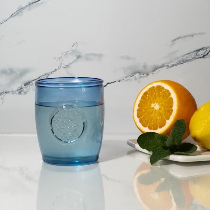 Цей набір із чотирьох склянок "AUTHENTIC BAJO" підкреслює красу простоти та екологічності. Кожна склянка має присадкувату, злегка бочкоподібну форму та прикрашена характерним рельєфним круглим тисненням з написом "AUTHENTIC 100% RECYCLED GLASS", що свідчить про використання переробленого скла та додає рустикального шарму. Ці склянки ідеально підходять для подачі води, соків, коктейлів або як універсальні склянки для щоденного використання.