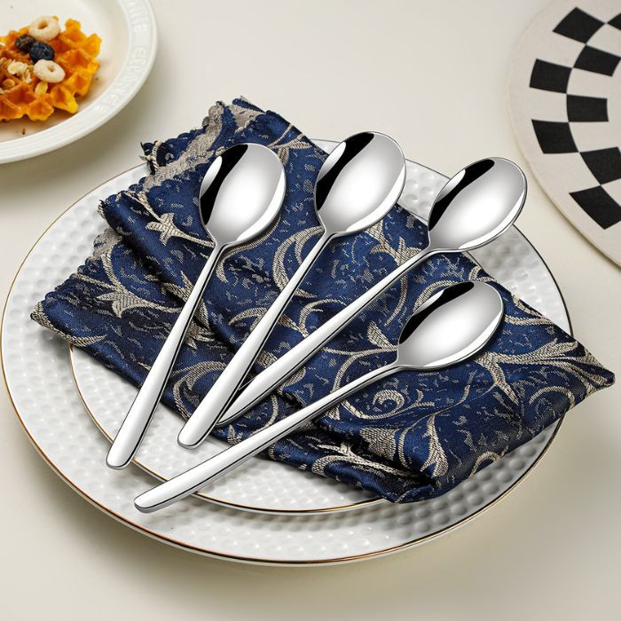 Цей набір столових ложок "ALASKA" є втіленням мінімалістичної елегантності. Кожна ложка має класичну овальну форму чаші та гладку, поліровану ручку, що плавно звужується до кінця, без будь-яких декоративних елементів. Чисті лінії та сучасний дизайн роблять ці прибори ідеальним вибором для тих, хто цінує стриманий стиль у сервіруванні, підходячи як для щоденного використання, так і для особливих моментів.