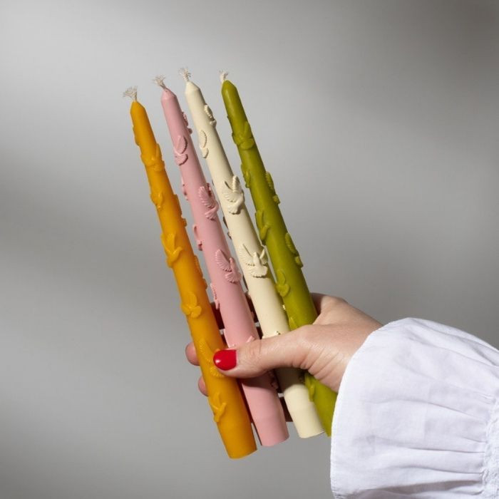 Варіант Doves: Кожна свічка прикрашена ніжними рельєфними зображеннями голубок, що символізують мир, кохання та гармонію. Ідеально підійде для створення романтичного настрою або як милий подарунок.