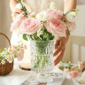 Елегантна ваза з прозорого скла, прикрашена рифленим дизайном. Ідеально підходить для розміщення квіткових композицій або як самостійний декоративний елемент. Створює вишукану атмосферу у вашому інтер’єрі.
