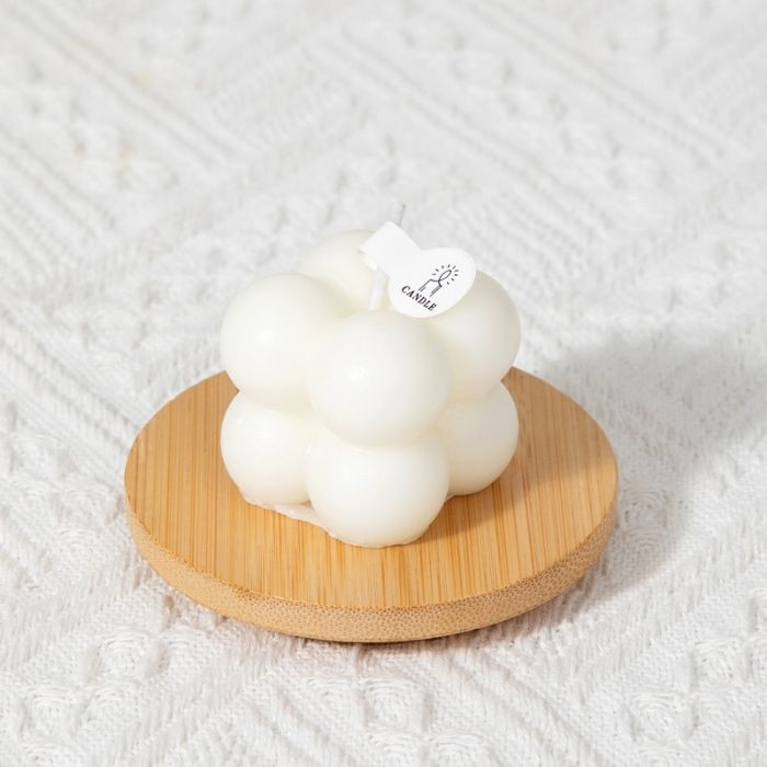 Ця міні-свічка «Mini Bubbles» є одним з найпопулярніших трендів в сучасному декорі. Її грайливий та водночас мінімалістичний дизайн, що складається з безлічі маленьких кульок, які утворюють куб, миттєво додає стильного акценту будь-якому простору. Виготовлена з високоякісного воску, ця свічка чудово виглядає як самостійний елемент на журнальному столику, полиці чи робочому місці, так і в композиції з кількох штук. Це ідеальний спосіб освіжити інтер'єр або зробити приємний та модний подарунок.