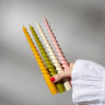 Ця витончена довга кручена свічка — це стильний спосіб додати кольору та динаміки вашому інтер'єру. Її елегантна спіральна форма красиво заломлює світло і привертає погляд, роблячи її чудовим акцентом для сервірування столу, камінної полиці або декоративної композиції. Виготовлена з високоякісного воску для рівного та чистого горіння, ця свічка доступна в різноманітних кольорах, що дозволяє підібрати ідеальний варіант для створення святкової чи романтичної атмосфери.