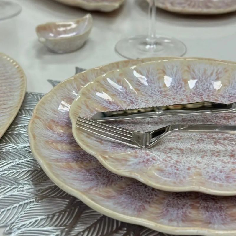 Оригінальний набір тарілок натхненний красою природи. Листяні та квіткові форми поєднуються з ніжною глазур'ю, створюючи гармонійний образ. Підійде для особливих подач та декору інтер'єру.