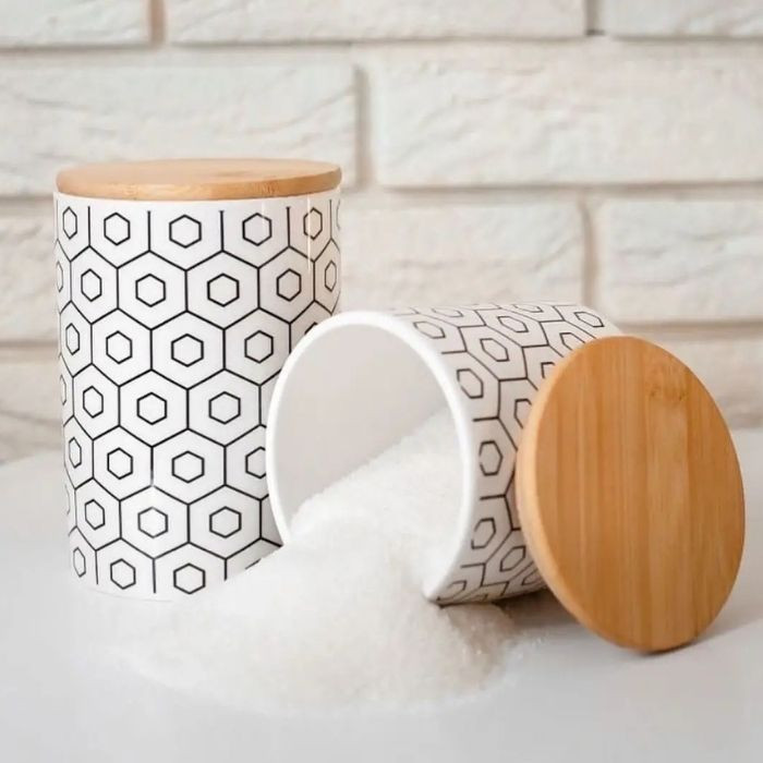 Контейнер для продуктів Comet виконаний у мінімалістичному, лаконічному стилі. Сучасний дизайн та відмінна якість, яка збережеться навіть після багаторічного використання – головні переваги даного посуду. Завдяки цьому цей органайзер - ідеальний варіант для подарунку дівчині, друзям і не тільки! Органайзер підходить для зберігання круп, спецій, чаю, кави, печива та інших сипких продуктів.Його можна використовувати не лише для щоденного використання, а й для сервірування святкового столу. Ємність виготовлена з високоякісної кераміки та натурального дерева (бамбук).