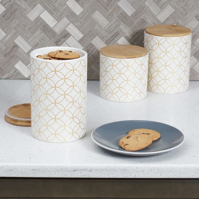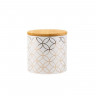 Контейнер для продуктов Constellation выполнен в стиле минимализм. Лаконичный дизайн придется по вкусу любителям изысканности и изящества. Органайзер станет поводом к радости любой девушки, ведь каждая хочет видеть свою кухню стильной. Данная банка высококачественная, приятная на ощупь, крепкая и долговечная в использовании. Это отличный вариант для хранения круп, специй, чая, кофе, печенья и других сыпучих продуктов. Емкость изготовлена из керамики и натурального дерева (бамбук). Емкость подходит не только для ежедневного использования, но и для сервировки праздничного стола.