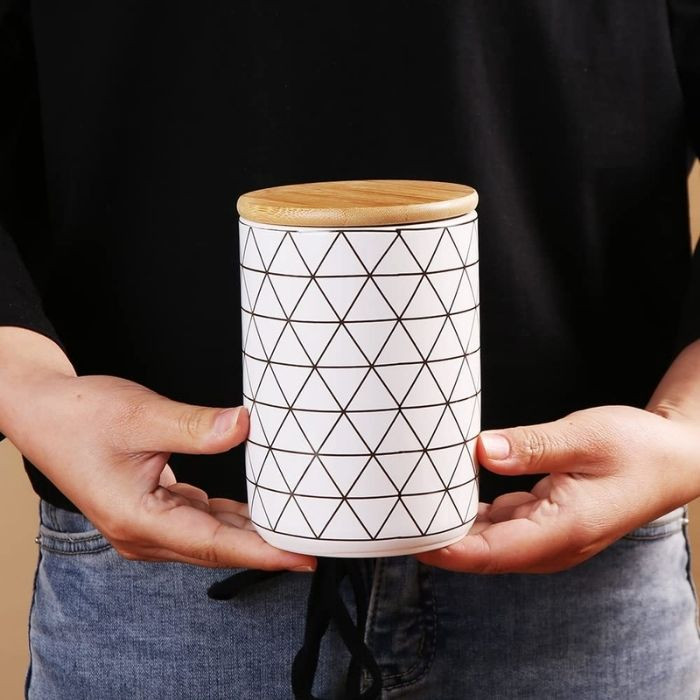 Контейнер для продуктов "Ромб" выполнен в стиле минимализма. Лаконичный дизайн придется по вкусу любителям изысканности и изящества. Органайзер станет поводом к радости любой девушки, ведь каждая хочет видеть свою кухню стильной. Данная банка высококачественная, приятная на ощупь, крепкая и долговечная в использовании. Это отличный вариант для хранения круп, специй, чая, кофе, печенья и других сыпучих продуктов. Емкость изготовлена из керамики и натурального дерева (бамбук). Емкость подходит не только для ежедневного использования, но и для сервировки праздничного стола.