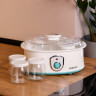 С йогуртницей можно легко и быстро готовить свежий и полезный йогурт дома. Эта модель имеет 7 баночек, объем одной баночки 180 мл, что позволяет готовить йогурт на всю семью или несколько дней.